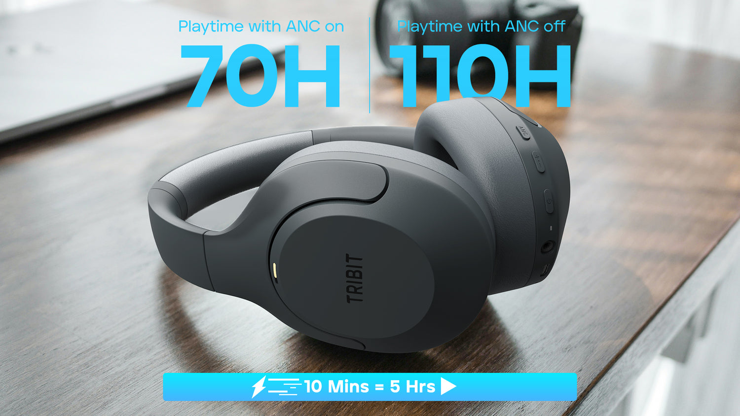 hours with ANC on. Just 10 minutes provides up to 5 hours of playtime (at 50% volume)