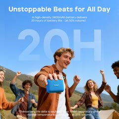 Studio-grade audio, defying its size. The new Tribit PocketGo packs 7W of powerful sound into a durable, waterproof design. With 20-hour battery life, your soundtrack now lasts as long as your adventures.
